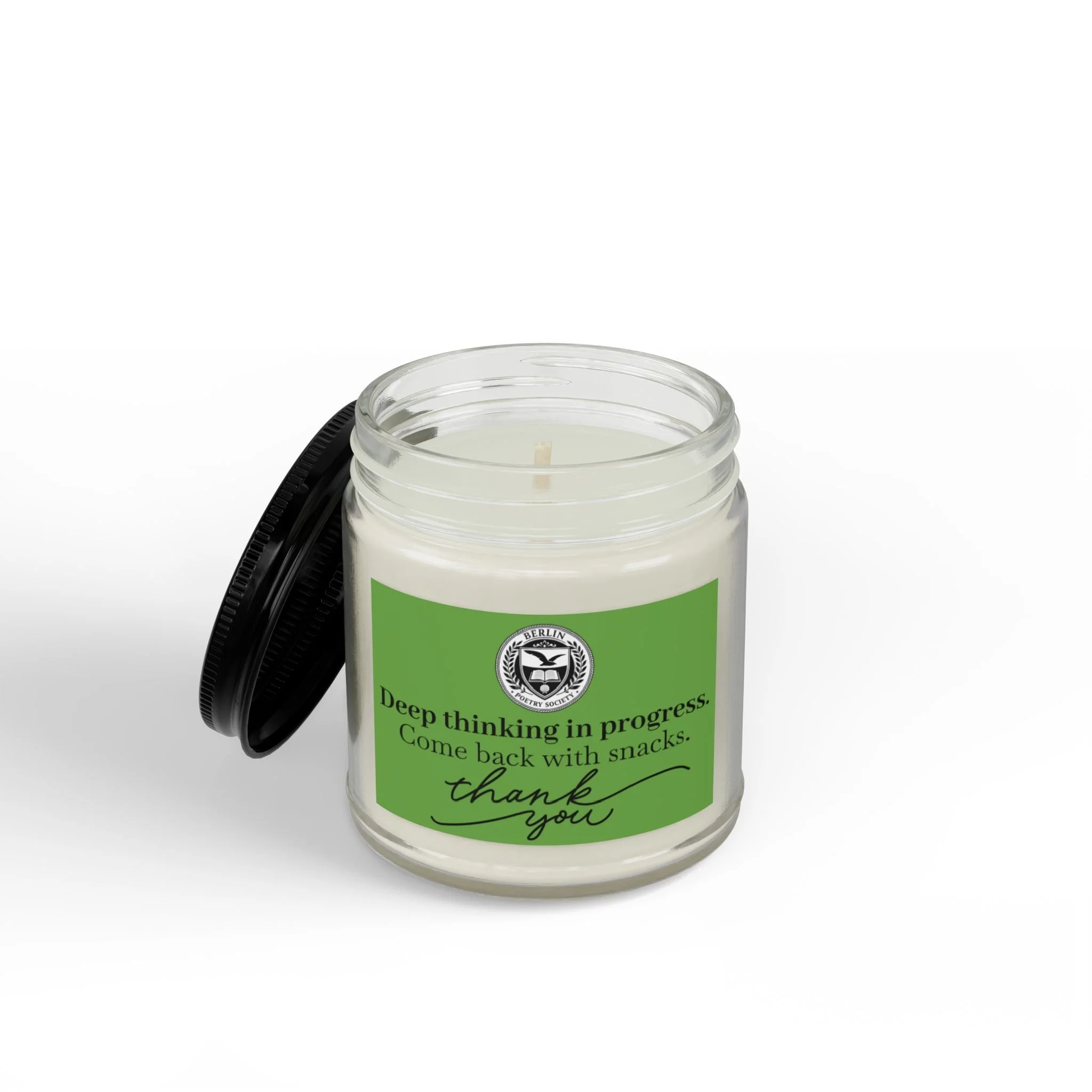 No need to communicate verbally. Light this communicative candle and relax into the benefits of silence and snacks!